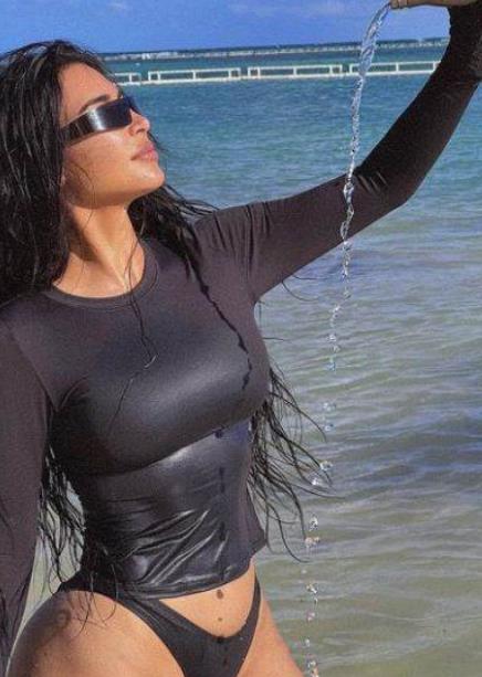 -Долго не сме се виделе, напишала Ким мислејќи на морето, по фотките на кои позира на плажа.